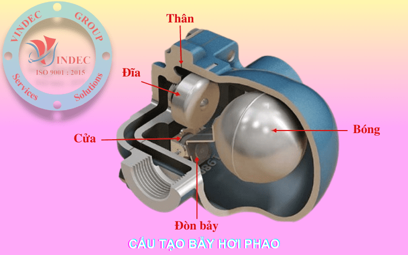 Bộ phận bi phao là bộ phận nằm trong thân bẫy, được chế tạo bằng chất liệu Inox, chúng có nhiệm vụ giúp đóng mở, được gắn với đòn bẫy.