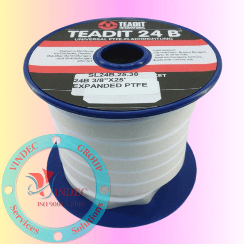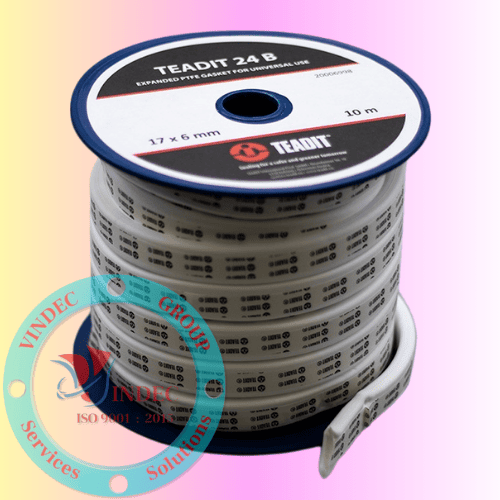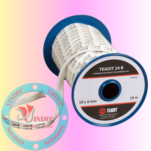 - TEADIT 24B là một gioăng đệm được sản xuất bởi Teadit International từ tinh chất sợi PTFE giãn nở trục đơn hướng và được cung cấp với một lớp đệm dính. Nó không gây hại cho sinh lý, không có mùi vị, không ô nhiễm hoặc độc hại. Nó có màu trắng.