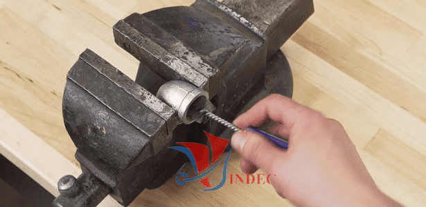 Vặn ống ren sau khi cuốn băng, vặn ống theo chiều kim đồng hồ.