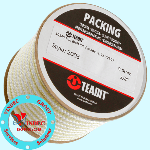 TEADIT 2003 là dây tết chèn được làm từ sợi PTFE nguyên chất và gia cố bằng sợi aramid ở cạnh góc. Các sợi được xử lý trước bằng các hạt siêu nhỏ PTFE, cộng với dầu silicon bôi trơn để giảm hệ số ma sát, cũng như nhiệt do ma sát tạo ra bởi tốc độ trục cao.