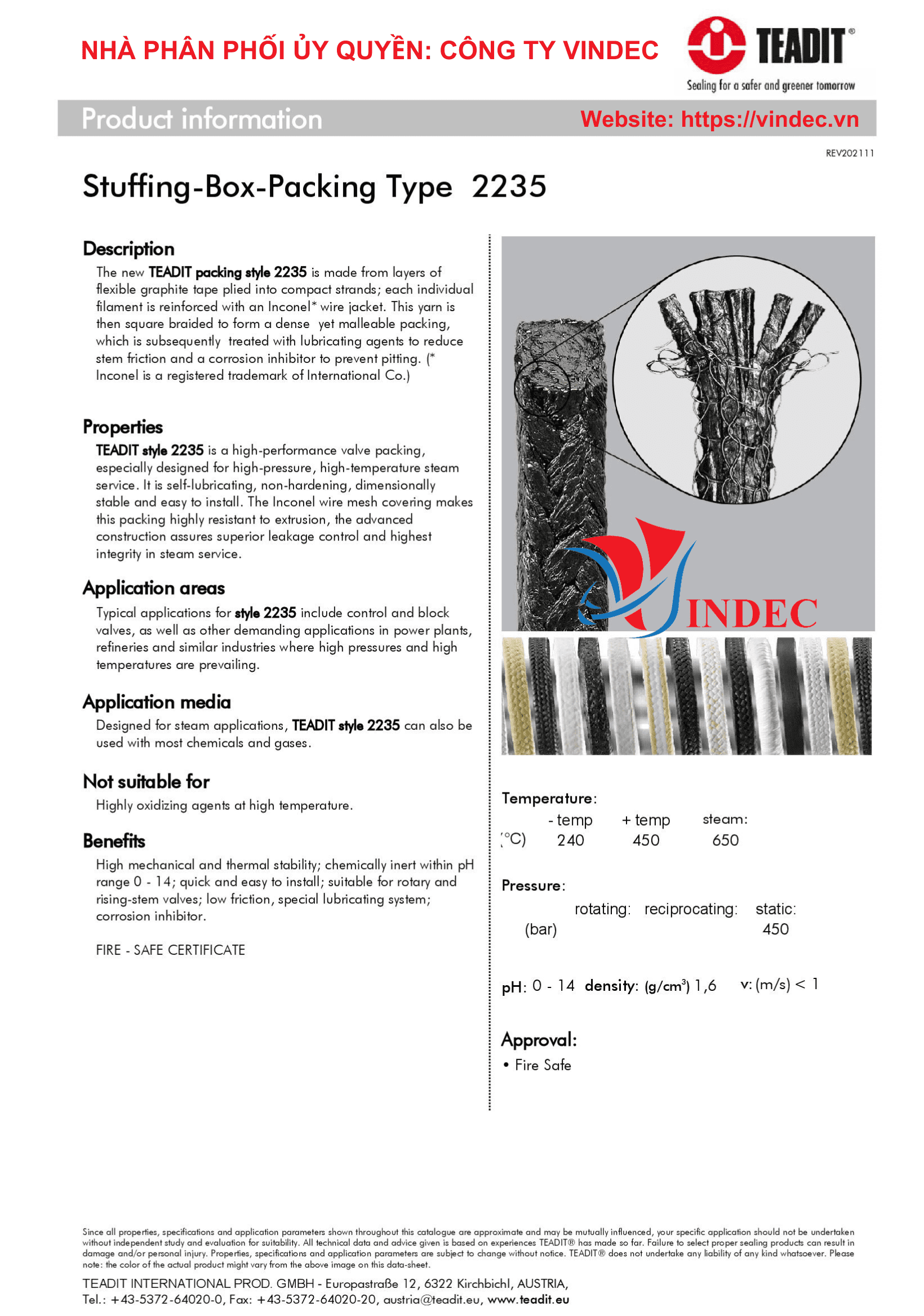 TEADIT 2235 là loại van đóng gói hiệu suất cao, được thiết kế đặc biệt cho hơi nước áp suất cao, nhiệt độ cao dịch vụ.
