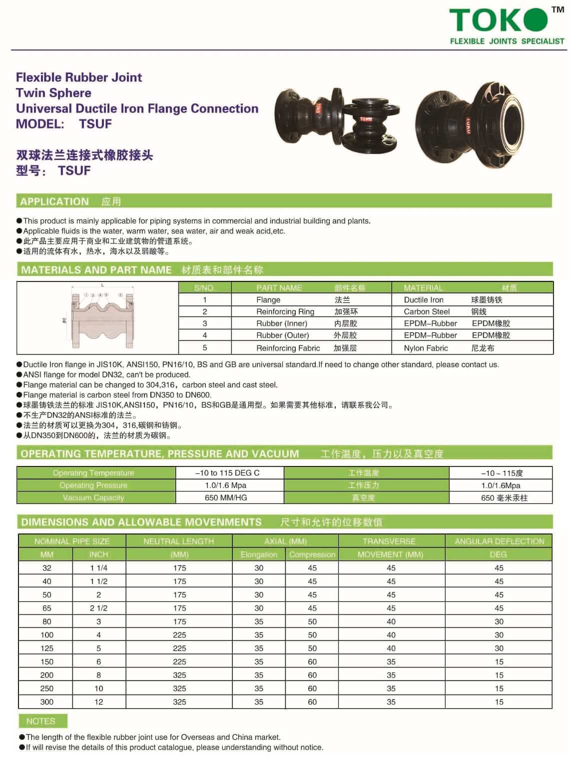 - Khớp nối mềm TOKO - TSUF ứng dụng trong hệ thống cấp thoát nước, lò hơi công nghiệp, hệ thống cấp khí nén...
