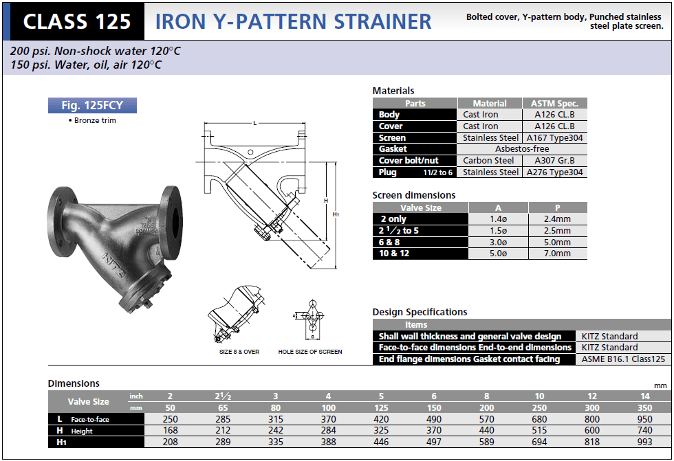 Y Lọc Gang Lắp Bích ANSI 125 KITZ