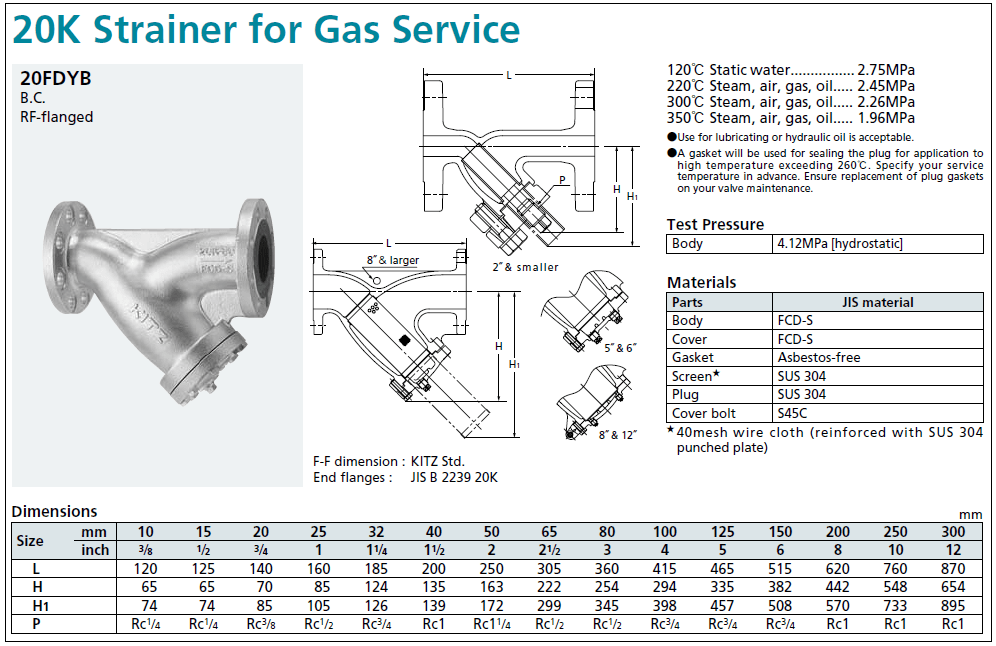 Lọc Y Gang Bích JIS 20K Hãng KITZ 20FDYB