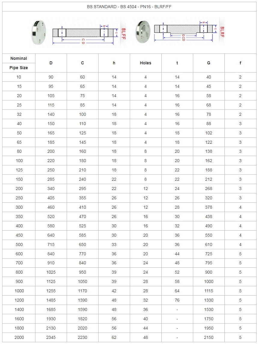 Kích Thước Mặt Bích Mù BS4504 PN16 - Blind Flange