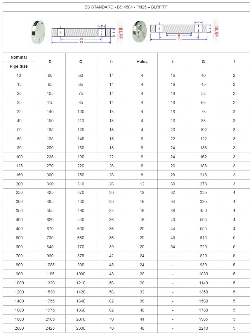 Kích Thước Mặt Bích Mù BS4504 PN25 - Blind Flange