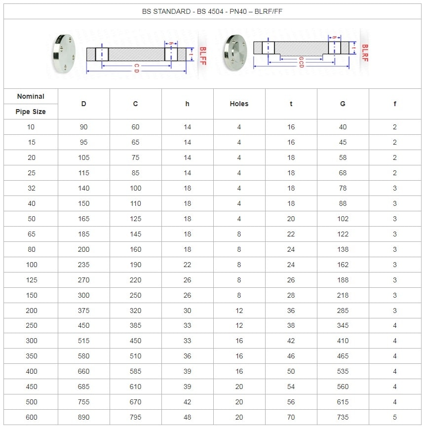 Kích Thước Mặt Bích Mù BS4504 PN40 - Blind Flange