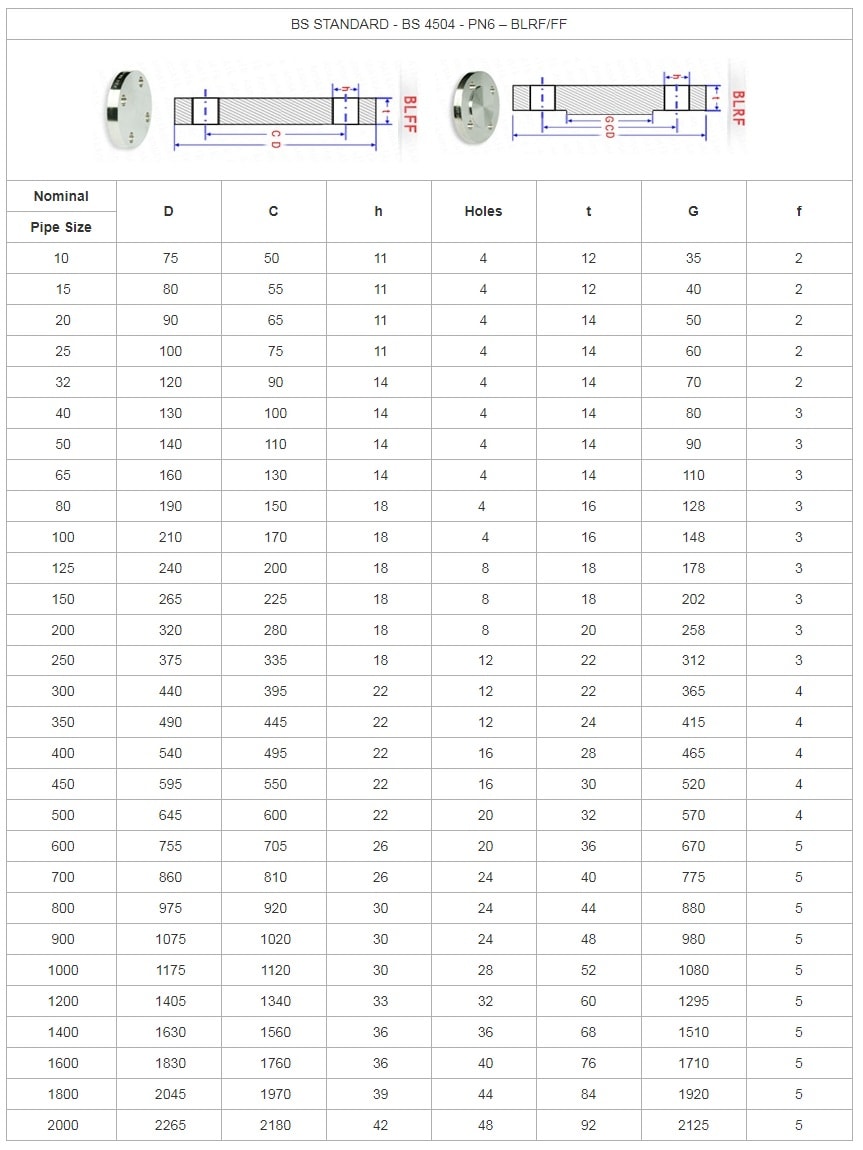 Kích Thước Mặt Bích Mù BS4504 PN6 - Blind Flange