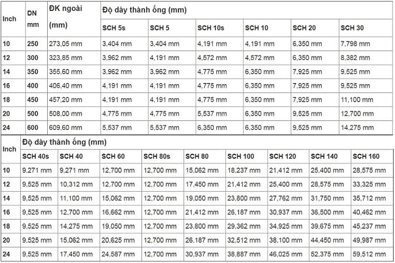 - - Tiêu chuẩn: ASTM, API 5L, GOST, JIS, DIN, ANSI, X52
