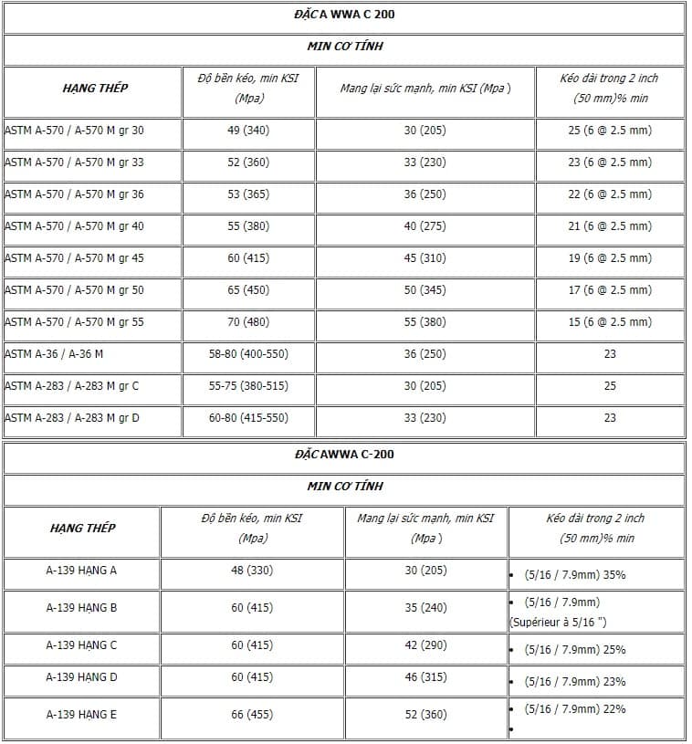 - - Tiêu chuẩn: AWWA C200, API 5L PSL1