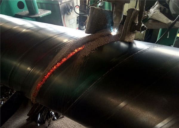 - - Ống thép hàn xoắn được sản xuất bằng phương pháp hàn hồ quang chìm dựa trên việc sử dụng kỹ thuật hàn song song để liên kết bên trong và bên ngoài các cạnh cuộn, đã được cắt và vát bằng cách phay cacbua để cấu trúc mối hàn đạt chất lượng cao.