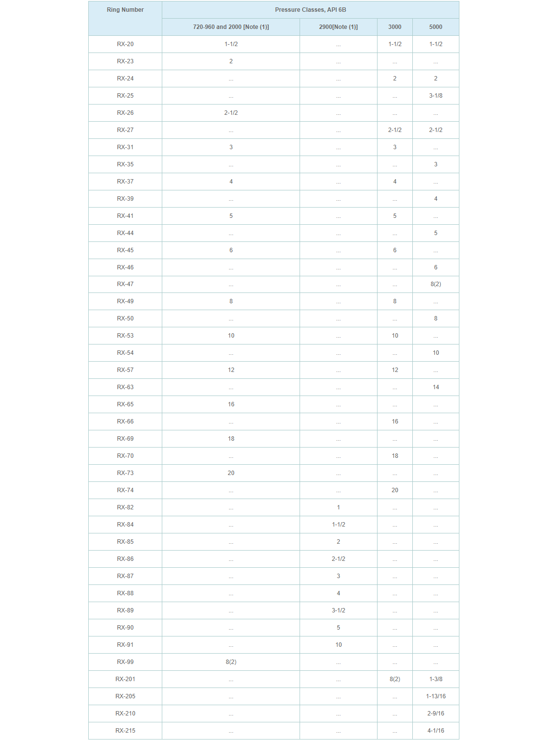 (1) Class 720, 960, and 2900 flanges to API 6B are obsolete. Data are for information only.