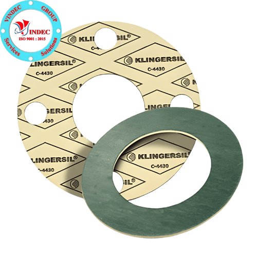 - Gioăng tấm đệm làm kín không amiăng KLINGERSIL® C-4430 (còn được gọi là tấm gioăng bìa giấy Klinger C4430) đây là loại vật liệu gioăng đệm không amiăng cao cấp được làm từ sợi synthetic đặc biệt và sợi thủy tinh được kết dính bằng cao su NBR.