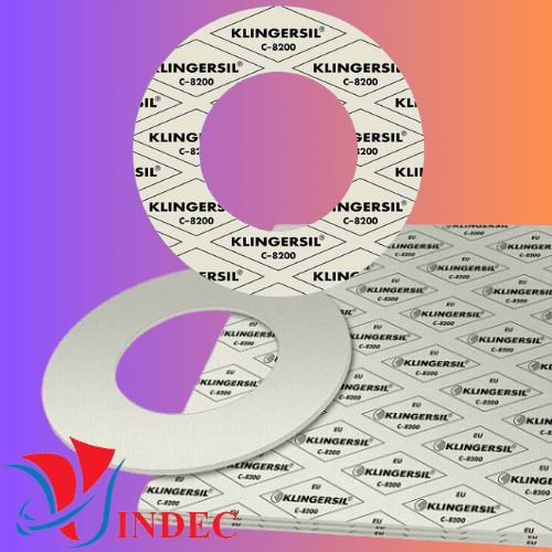 - Tấm đệm làm kín không amiăng KLINGERSIL® C-8200 (còn được gọi là tấm bìa giấy Klinger C8200), là vật liệu gioăng đệm không amiăng cao cấp được làm từ các loại sợi pha trộn với nhau và acid chống dính