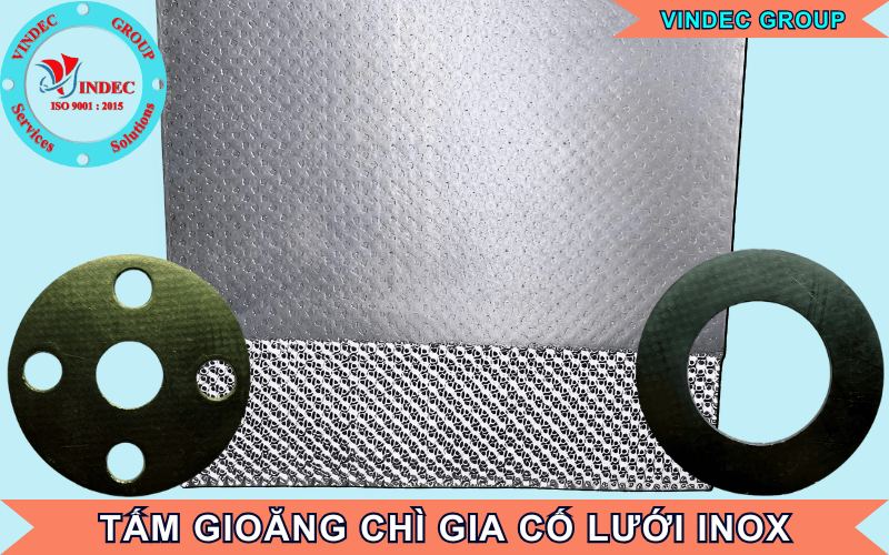 - Tấm gioăng chì gia cố lưới inox, hay còn gọi là gioăng chì graphite gia cố lưới inox, là một loại vật liệu làm kín được sử dụng trong các ứng dụng công nghiệp, đặc biệt là trong các hệ thống chịu nhiệt độ và áp suất cao, hoặc các môi trường hóa chất. Nó được tạo thành từ tấm chì (graphite) mềm dẻo được gia cố thêm lớp lưới inox (thường là SS304 hoặc SS316) ở giữa để tăng cường độ cứng vững và khả năng chịu áp lực.