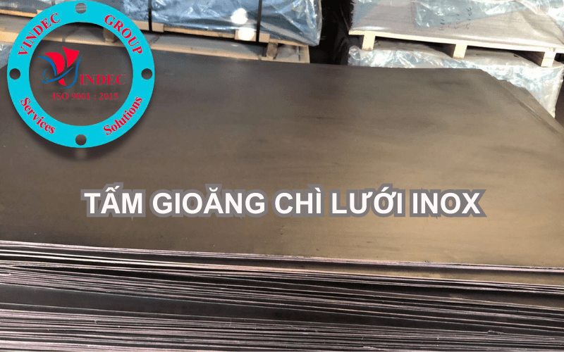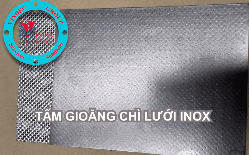 Tấm gioăng chì graphite lưới inox là một loại vật liệu dạng tấm được làm từ chì (graphite) mềm dẻo được gia cố bằng lưới inox (độ dày 0,2-0,25mm) ở giữa để gia cường thêm độ cứng vững chịu áp lực cao "có tên tiếng anh là: Reinforced flexible graphite sheet with SS304 or SS316 stainless steel tanged insert). Với đặc tính chịu nhiệt độ cao, chịu áp lực cao, chịu dầu và chịu hóa chất tốt, nên loại tấm gioăng chì graphite này được dùng làm ron vòng đệm chì graphite làm kín cho mặt bích, van công nghiệp, máy bơm, bình chịu áp suất trao đổi nhiệt, bình ngưng, đường ống và máy móc thiết bị công nghiệp trong môi trường khắc nghiệt như: Trong hệ thống chịu nhiệt độ cao, hơi bão hòa và quá nhiệt, dẫn xuất dầu mỏ lỏng, ethanol, hóa chất,...