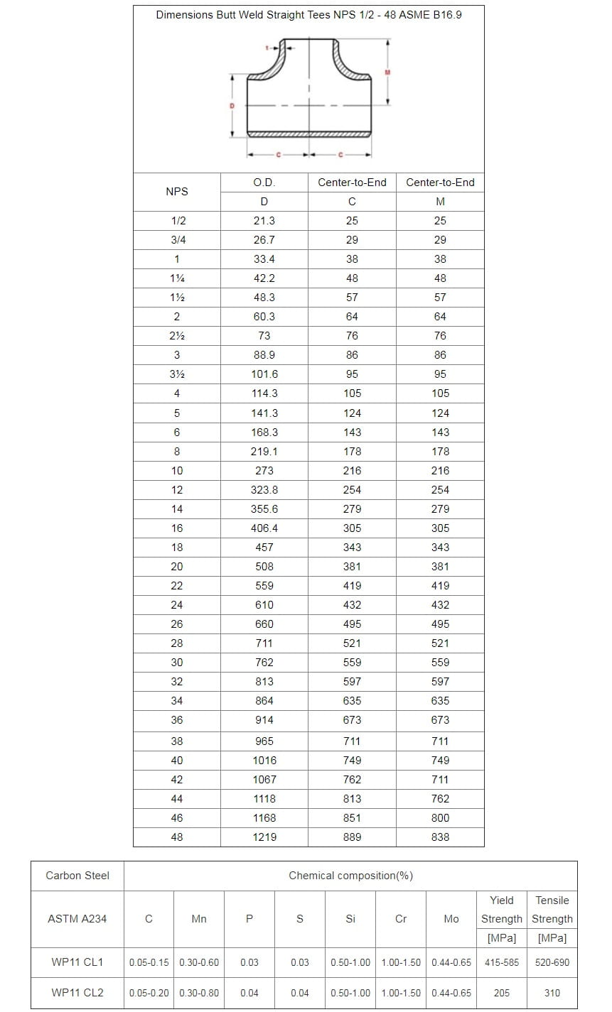 Te Thép Hàn ASTM-A234 WPB ANSI B16.9 SCH20, SCH40, SCH80, SCH160