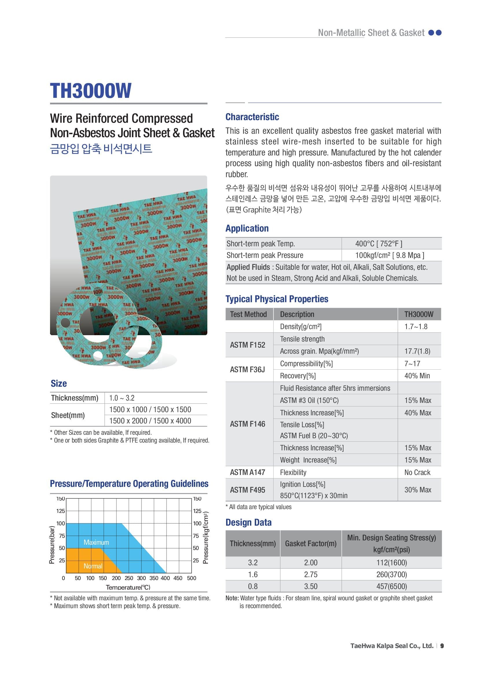 - - Tấm gioăng đệm TH3000W này là vật liệu gioăng không chứa amiăng chất lượng tuyệt vời với lưới thép không gỉ được chèn vào để phù hợp với nhiệt độ cao và áp suất cao. Được sản xuất theo quy trình cán nóng sử dụng sợi không chứa amiăng chất lượng cao và cao su chịu dầu.