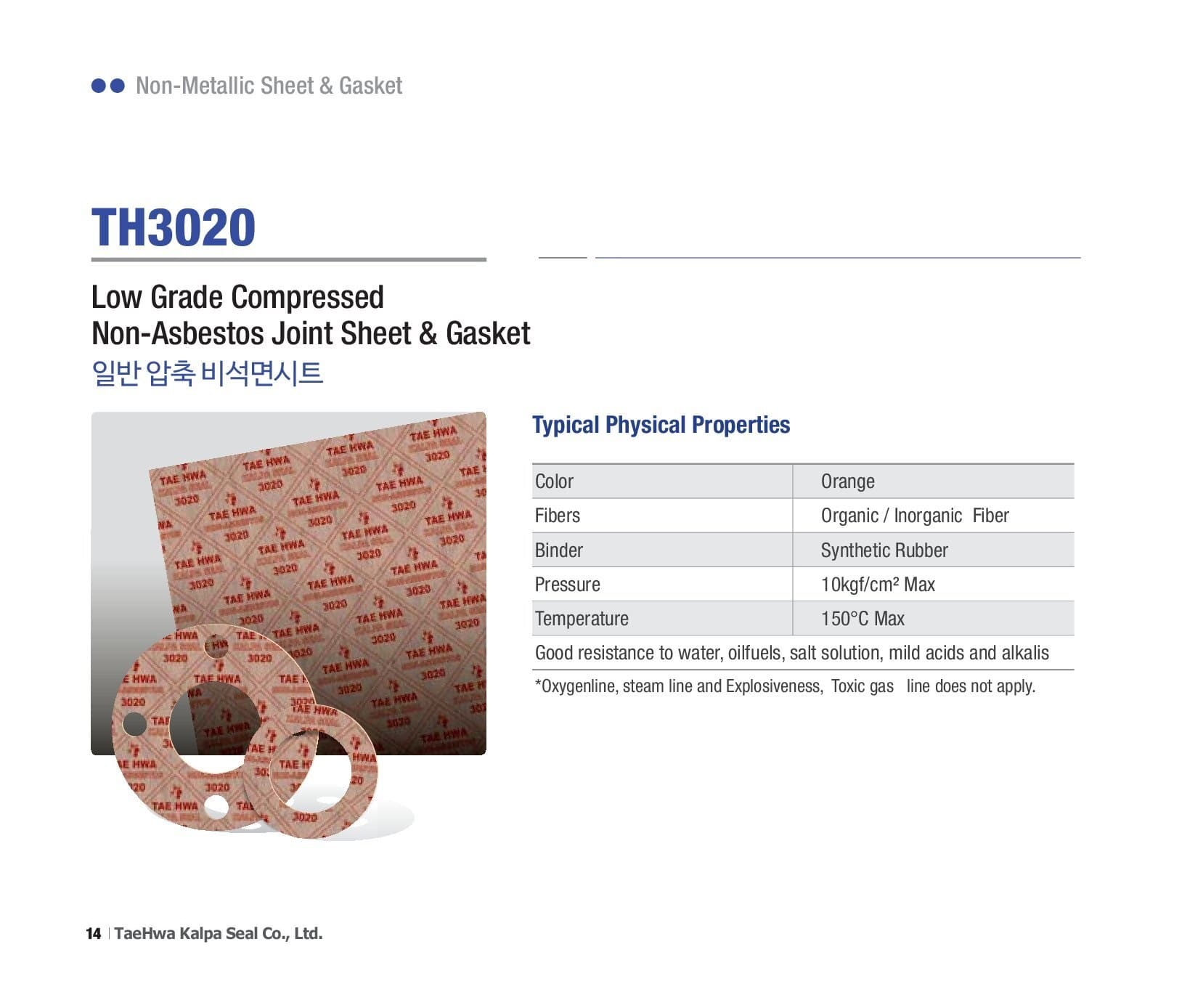 - - Tấm gioăng đệm TH3020 này được sản xuất bằng quy trình cán nóng sử dụng sợi xơ hữu cơ, vô cơ chất lượng cao và cao su tổng hợp. Nó có khả năng chịu nước tốt, dầu nhiên liệu, dung dịch muối, và các loại axit nhẹ...