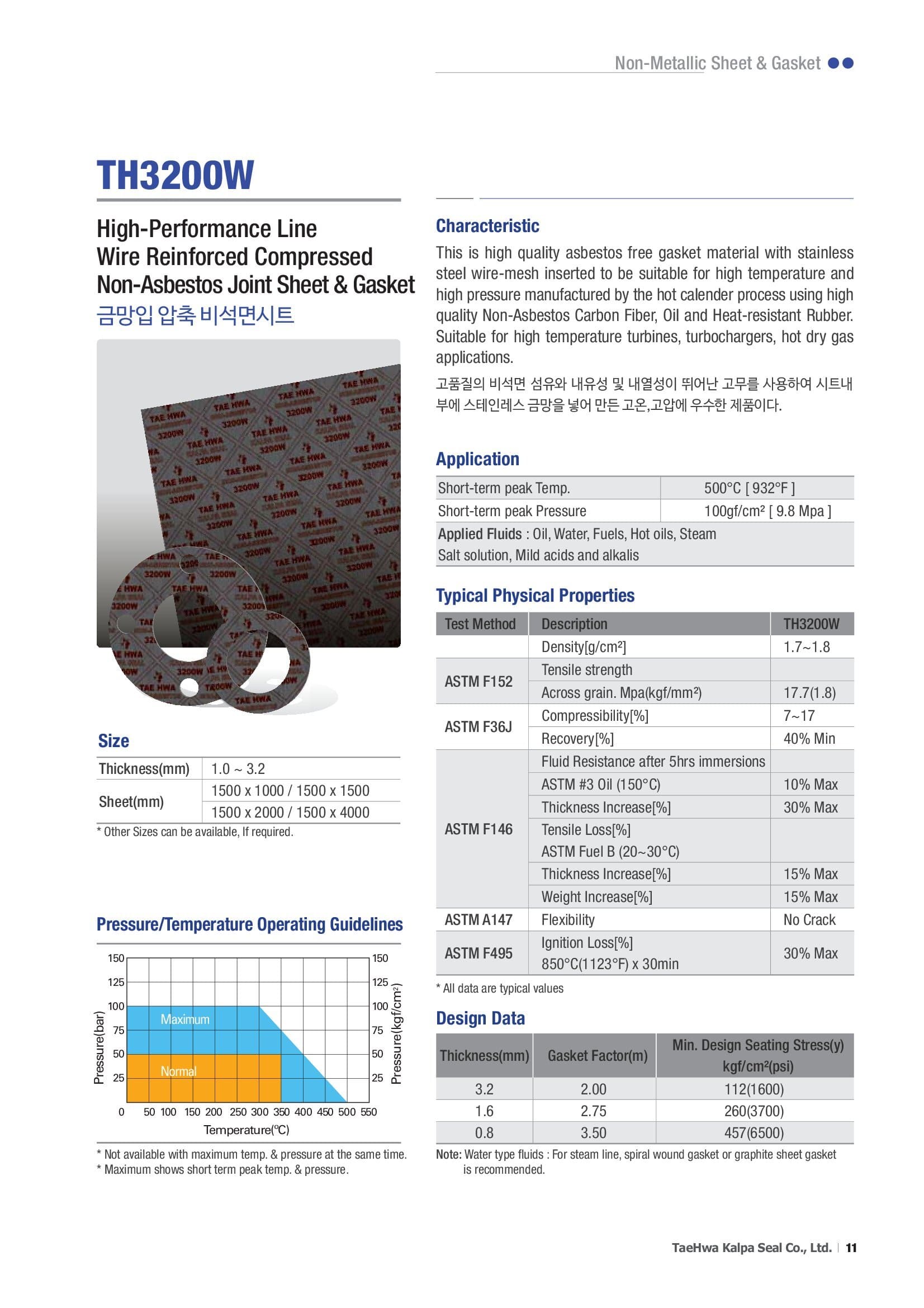 - - Tấm gioăng đệm TH3200W thích hợp cho các tua-bin nhiệt độ cao, bộ tăng áp, ứng dụng khí khô nóng.