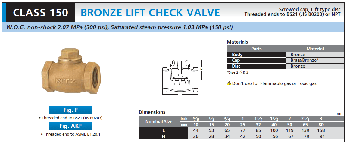 Ứng dụng: Van Một Chiều Hơi Đồng Nối Ren KITZ: Model. F có tác dụng ngăn môi chất hơi nóng, khí... tự động chảy ngược.