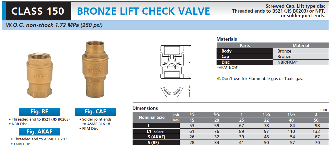 Van 1 Chiều Lò Xo Đồng Ren KITZ Fig RF - Van KITZ