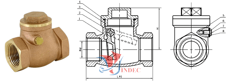 Van 1 chiều đồng lá lật nối ren có tên tiếng anh là Bronze/brass swing check valve threaed ends/ Bronze/brass non-return valve threaed ends, còn được gọi là van kiểm tra đồng lá lắp ren. Được sử dụng trong các hệ thống thủy lực để ngăn chặn, nước, dầu hoặc chất lóng, khí chảy ngược lại