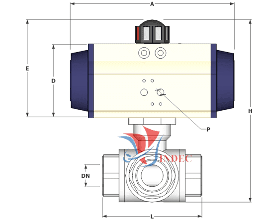 3 Way Stainless Steel Ball Valve Double Acting Pneumatic Actuator