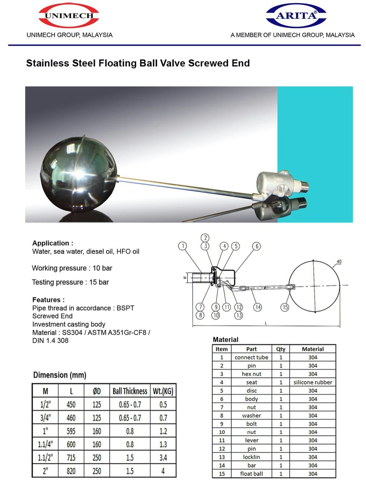 SS304 FLOAT VALVE S/E ( VAN PHAO CƠ INOX HIỆU ARITA - XUẤT XỨ MALAYSIA)